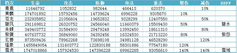守护兽共有9个,分别是青鹿→黄麟→苍龙→碧凤→朱蝶→紫貘→玄兽→缊象→雪虎。