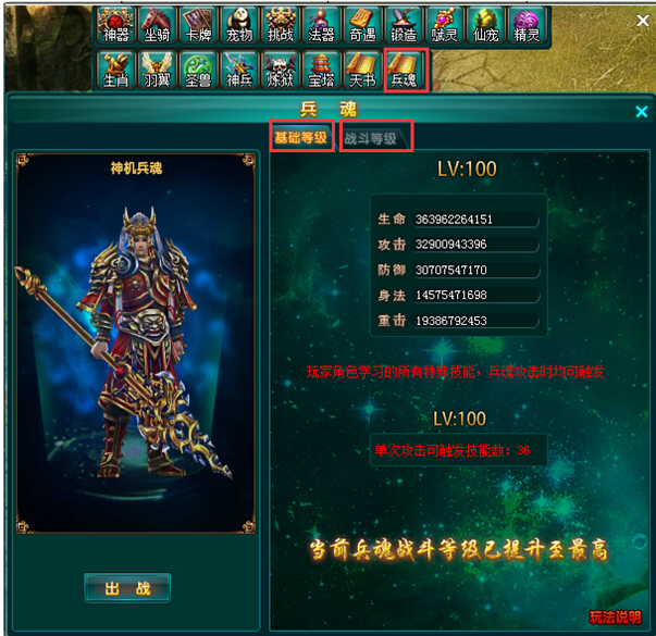 2、兵魂战斗等级