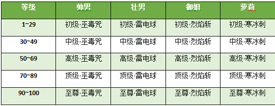 2、兵魂攻击特效根据玩家体型及基础等级变化(都是单体技能),具体如下所示: