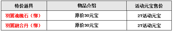 元宝限时抢购:活动期间,所有玩家可使用 1000元宝 在右上角 羽魂尝鲜 界面 购买超值奖励: