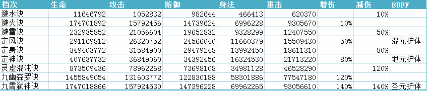 修炼仙诀可获得生命、攻击、防御、重击、身法、增伤、减伤等大量属性加成。