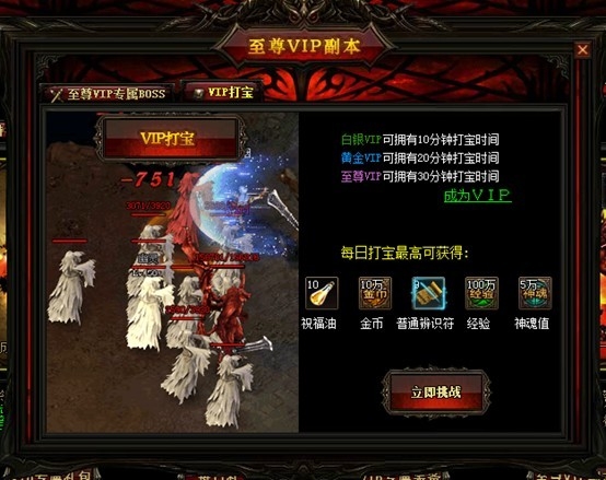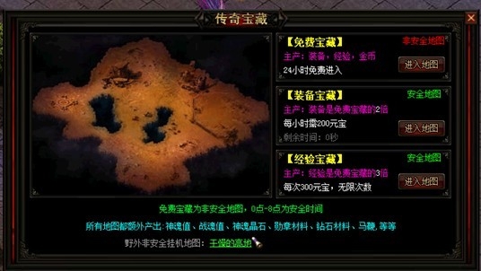 为VIP玩家新开一个打宝地图,越高级的VIP可进入打宝的时间就越长。直接在VIP面板点击进入地图即可。