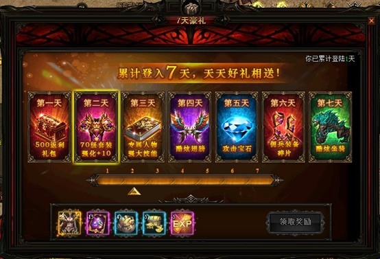 玩家每天登陆可获得丰厚奖励,天数可以累计。