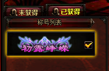 1、点击已获得按钮,就会显示玩家当前所获得的称号,勾选称号后方的勾选框即可显示称号;