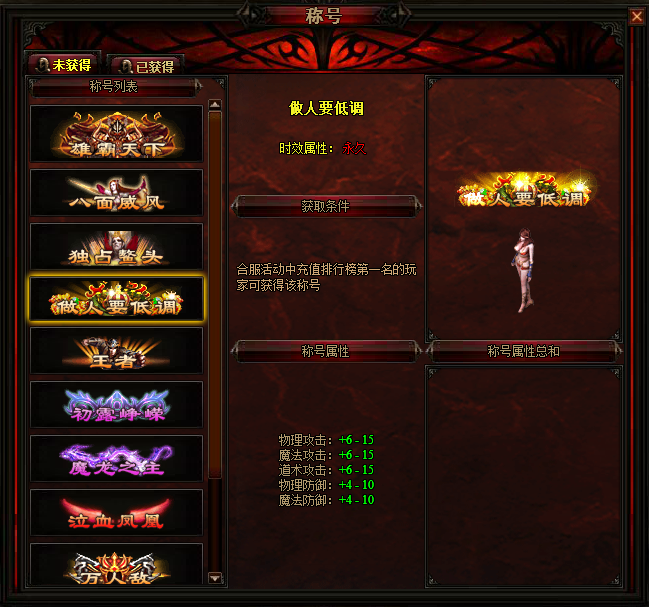 1、每个称号都具有附加属性,一旦获得某称号,则该称号的属性加成就会生效;