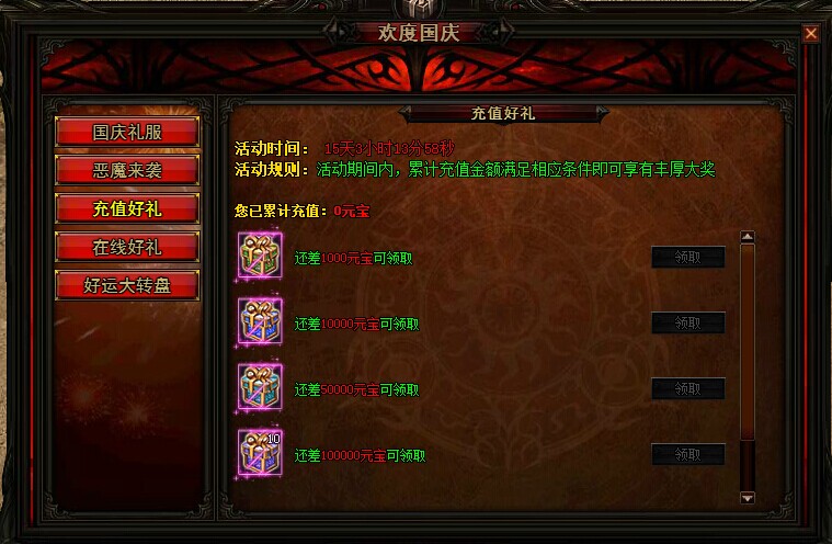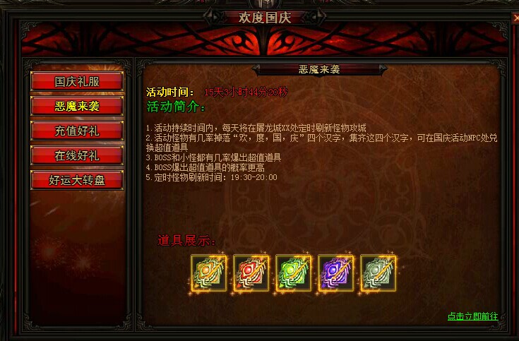活动入口:点击游戏右上角活动区域“欢度国庆”图标进入