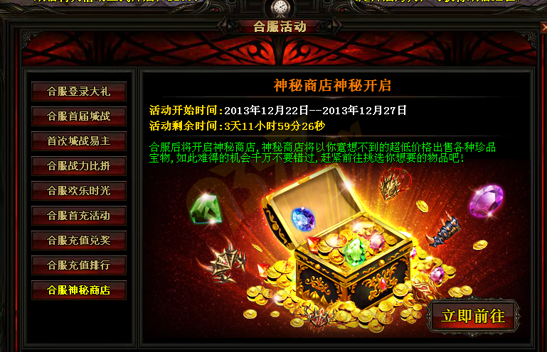 正式合服后,玩家可通过合服活动窗口进入神秘商店。