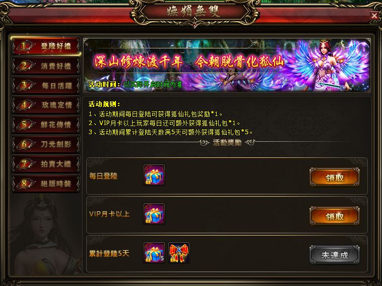 2、新增“妩媚无双”活动,神秘狐仙时装助您羽化登仙!