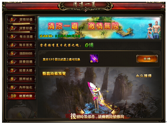 2、新增“清凉一夏”活动,绝版夏日武器,挥洒出每一滴热汗!详情请见>>清凉一夏活动介绍<<;