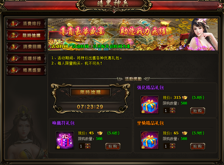活动主题:尊贵豪华盛宴 助您战力飞跃