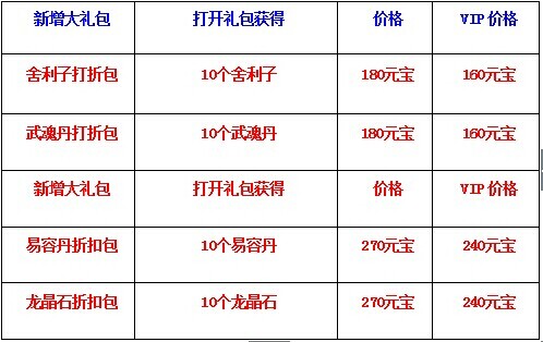 活动期间,限时活动面板抢购 新增大礼包 全新上架,所有玩家可9.5折购买打折包,VIP玩家更可拥有8.5折的优惠。仅在活动期间内才能购买获得,机会不容错过!