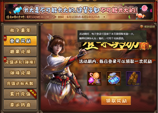 活动期间,每天登录可直接于本页面领取奖励一次。