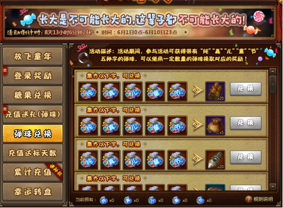 活动期间,每充值50元宝,即可领取弹珠礼包(随机)*1,上不封顶。