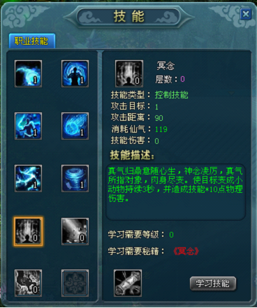 2、玩家拥有对应技能的技能秘籍,该秘籍学习后将消失。