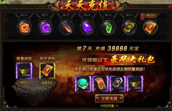 活动期间,每日累计累充指定金额元宝即可获得奖励!