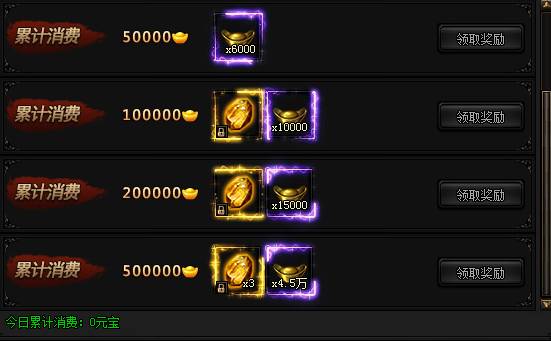 活动期间,每日累计消费指定金额元宝即可获得奖励!