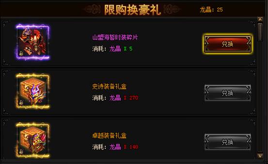 活动期间内,进行幸运探宝有一定概率获得龙晶。可以使用龙晶兑换下列极品奖励!