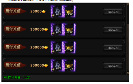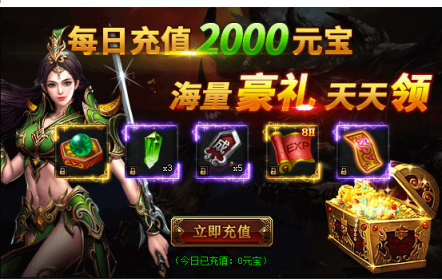 活动期间内,每天充值2000元宝可以领取1000W经验,暗器结晶,成就令牌,探宝符、8小时三倍经验符等海量道具!