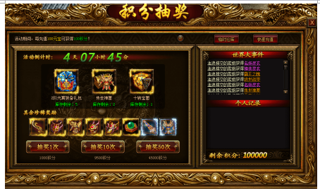 活动期间,每充值100元宝可获得100积分!(温馨提示:积分在活动结束后清空,请务必使用完毕!)