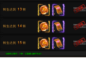 活动期间,转生达到要求即可领取大奖,每项奖励每人仅限领取1次。