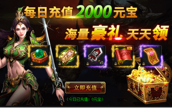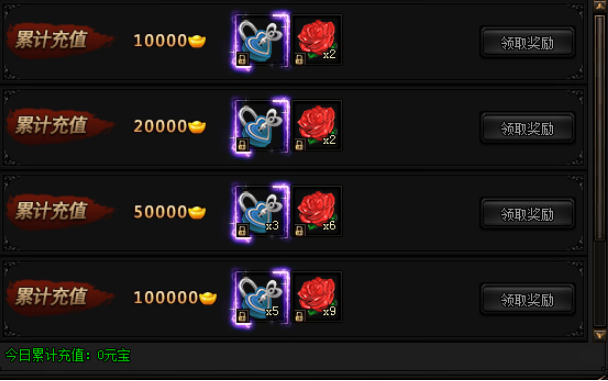 活动期间,每日累计充值指定数额元宝即可领取奖励!