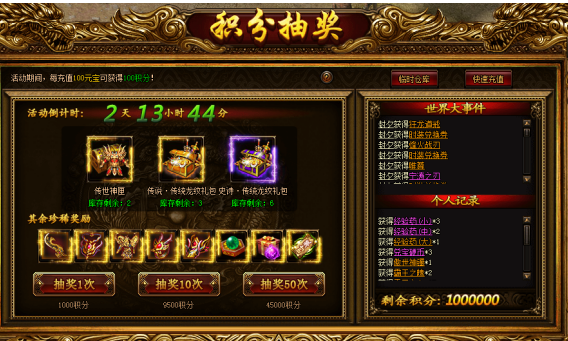 活动期间, 活动期间,充值100元宝即可获得100积分!(温馨提示:活动结束前记得用完积分哦)!
