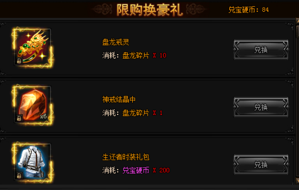 活动期间内,进行幸运探宝有一定概率获得兑换硬币。可以使用兑换硬币兑换下列极品奖励!