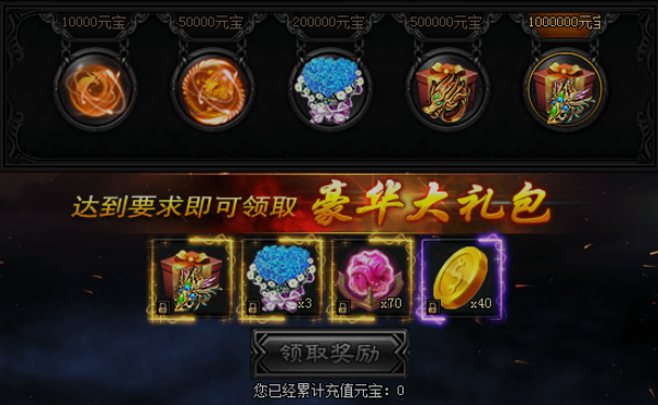 活动期间内,玩家累计充值元宝数额即可领取奖励。