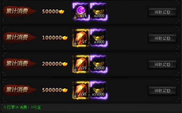 活动期间,每日累计消费指定数额元宝即可领取奖励!
