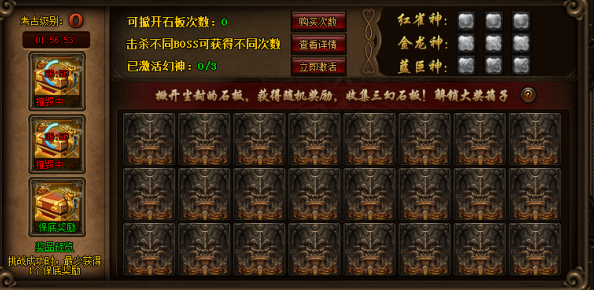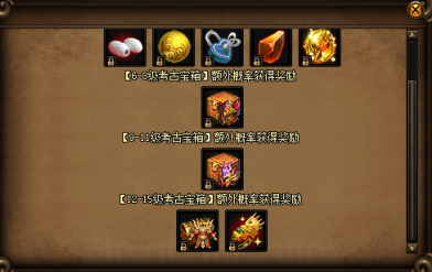 活动期间,可以进行一次次的限时考古。每次限时完成考古将会提升你的考古等级,等级越高箱子内的奖励越好,相对限时也更短!考古等级和次数将会在每天0点清零,正在进行的考古可享受清零前的等级奖励。