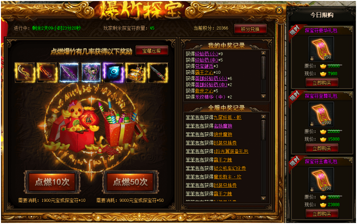 活动期间,爆竹探宝右侧超值优惠探宝符限购!