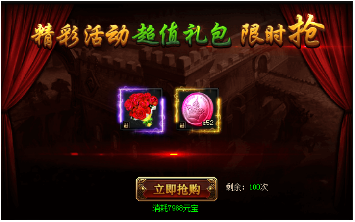 活动期间,每人每天可购买超值优惠的九九玫瑰、粉红硬币!(温馨提示:5月19日到5月26日0点期间,不同时间会出不同的限购道具哦)