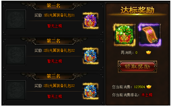 活动期间,活动期间,累计消费20000元宝可获得达标奖励,消费第1,2,3名可获得排行奖励(至少消费60万元宝!)