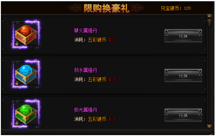 活动期间内,进行幸运探宝有一定概率获得兑换硬币。可以使用兑换硬币兑换下列极品奖励!