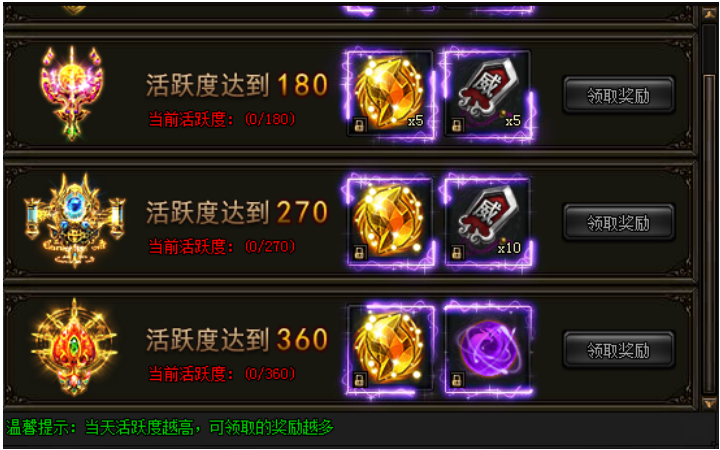 活动期间内,玩家每天活跃度达到要求即可领取奖励。