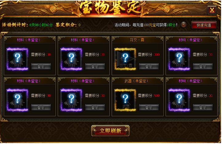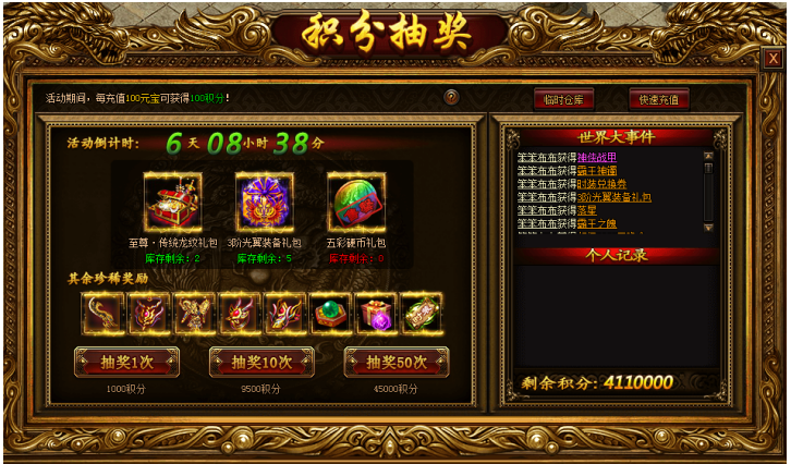 活动期间,每充值100元宝可获得1积分!