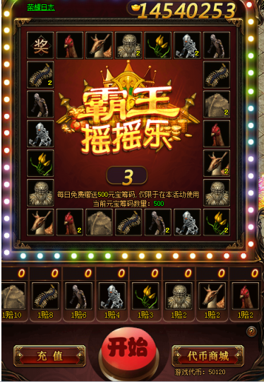 活动开启期间,玩家可花费元宝下注,随意选择8个图按中一个或者多个,点击开始按钮进行抽奖,抽奖结果与玩家所压图案相同则获得对应的元宝奖励。每轮最低押一注,最高99注,每注需要500元宝,押注越多奖励越高;不同图案有不同倍率,倍率越高返还元宝奖励越高,元宝会以道具形式只发给玩家。(温馨提示:具体细则可查看代币商城上方的问号)!