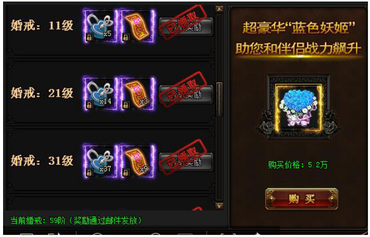活动期间,婚戒达到指定要求即可领取大奖!每项奖励每人仅限领取一次!