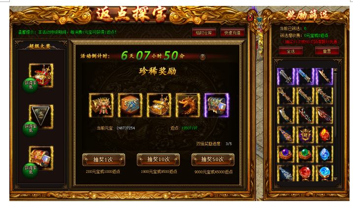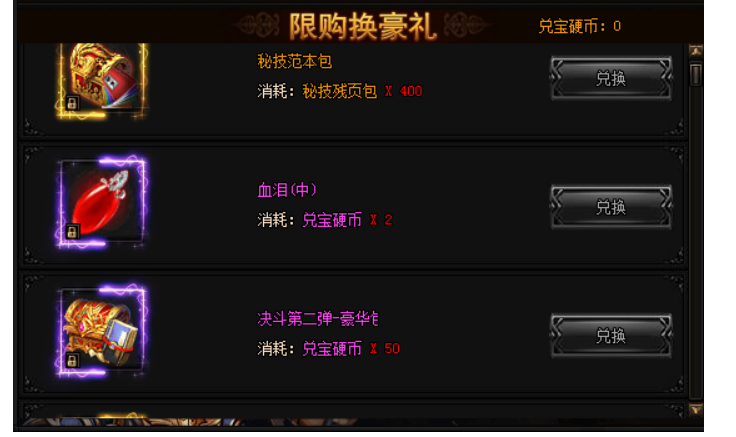 活动期间内,进行幸运探宝有一定概率获得兑换硬币。可以使用兑换硬币兑换下列极品奖励!