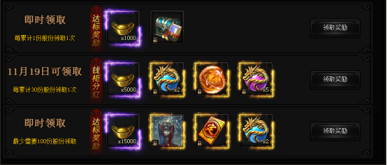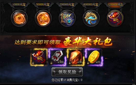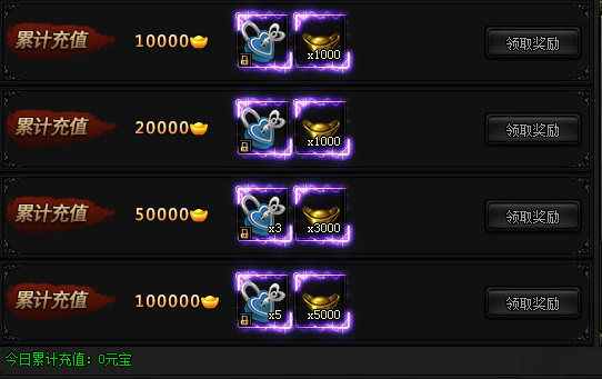 活动期间,每日累计充值指定数额元宝即可领取奖励!