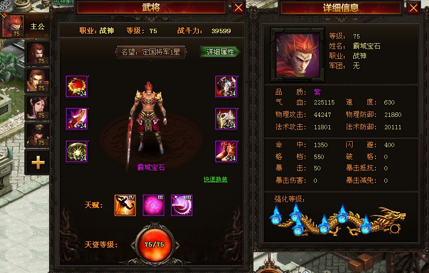 最后告诉大家一个小诀窍:各种职业有不同的优势成长,即升级后所增加的属性,其中战神主血防,天命主攻击,猎魂主暴击,大家也可以据此调整各自职业的宝石。
