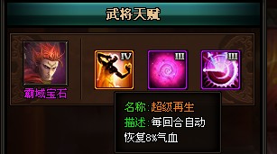 | 假死 | 死亡后不消失,死后第4回合起一定几率复活并回复一定量气血;装备“假死”天赋的武将不能被治疗 (“假死”天赋不能与“神佑”天赋同时装备) |
