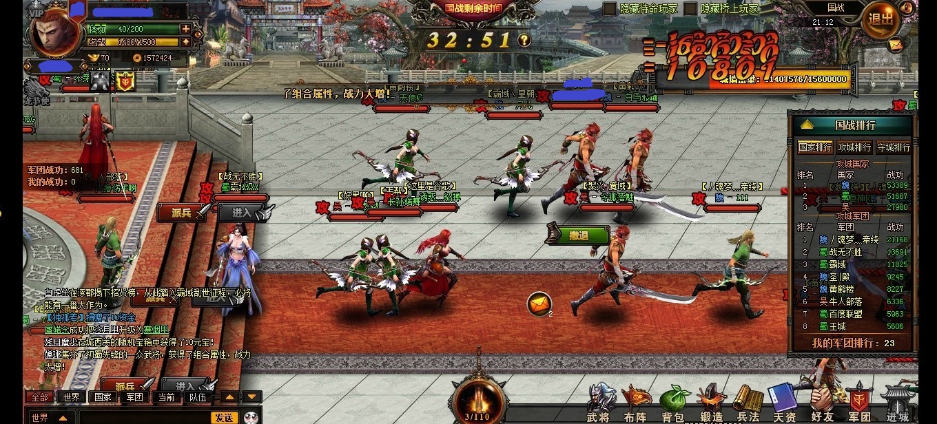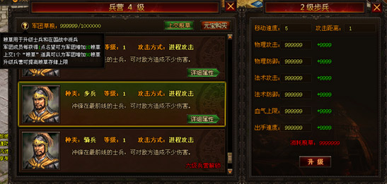 军团玩家可通过日常的贡献等行为来为军团所属的国家积累粮草,当粮草积累到一定数量,可使用粮草造兵向敌对势力的城池发起攻击。受攻击一方可派兵抵御外敌入。