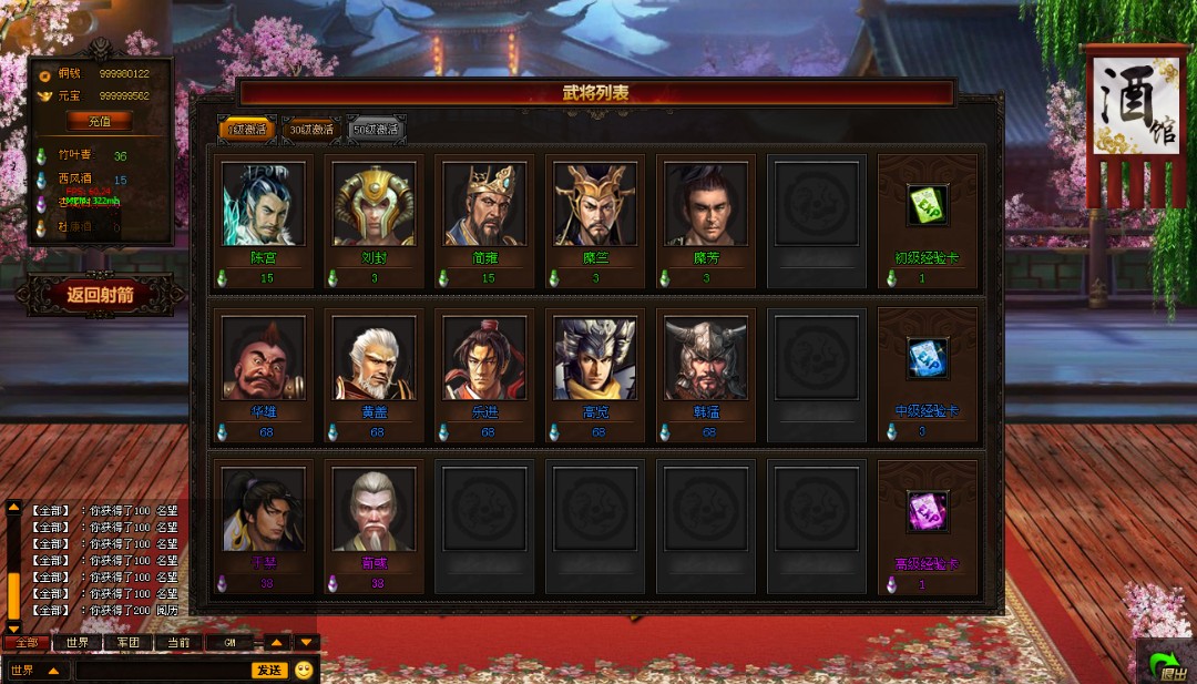 4、兑换武将:获得一定数量的酒之后,就可以在酒馆中兑换武将了。