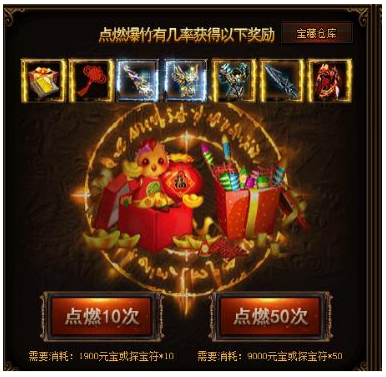 活动期间,累计消费指定元宝数额即可领取大奖!符合条件即可领取坐骑时装贺岁年兽幻化券等奖励。