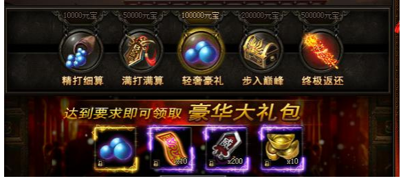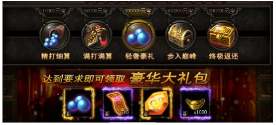 活动期间,累计充值指定元宝数额即可领取大奖!