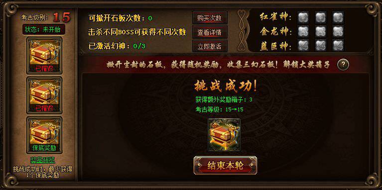 活动期间,可以进行一次次的限时考古。每次限时完成考古将会提升你的考古等级,等级越高箱子里面的奖励越好,相对限时也更短!考古等级和次数将会在每天0点清零,正在进行的考古可享受清零前的等级奖励!