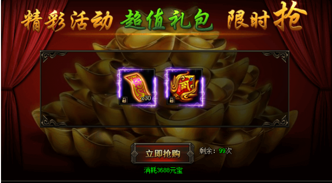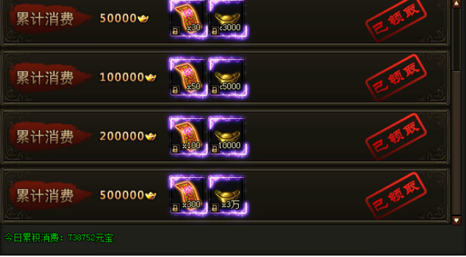 活动期间,每日累计消费指定元宝,即可领取相应的道具!