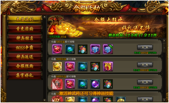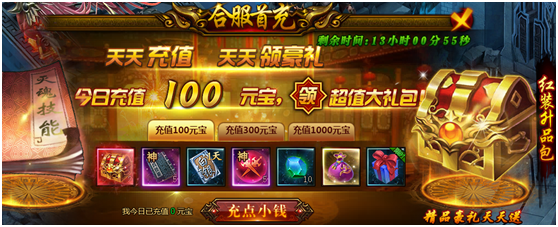 1. 合服之日起,合服首充每天都显示在主界面,合服首充总共进行7天