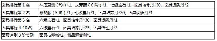 玩家可在活动期间对面具进行升阶,与其他玩家竞逐名次赢取奖励